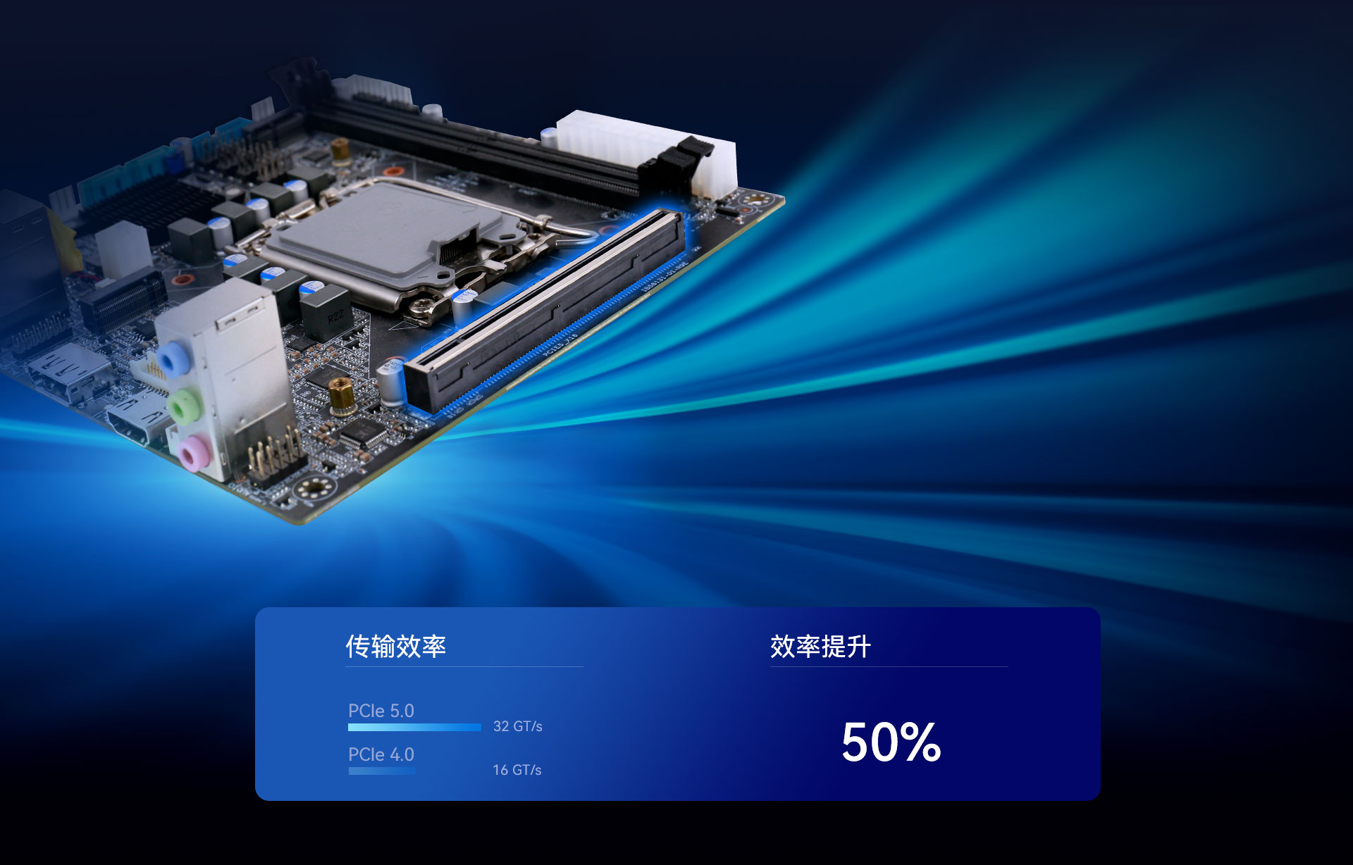 PCIe 5.0 x 16 接口作为 IB5-8131的核心卖点,与上一代PCIe 4.0相比,PCIe 5.0拥有翻倍的带宽与数据传输能力,从64GB/s(16GT/s)一跃至128GB/s(32GT/s),可连接各种高性能显卡,固态硬盘、FPGA卡、AI加速卡等,应用于各种需要快速数据传输的情景,如游戏、内容创作、办公、专业工作站。