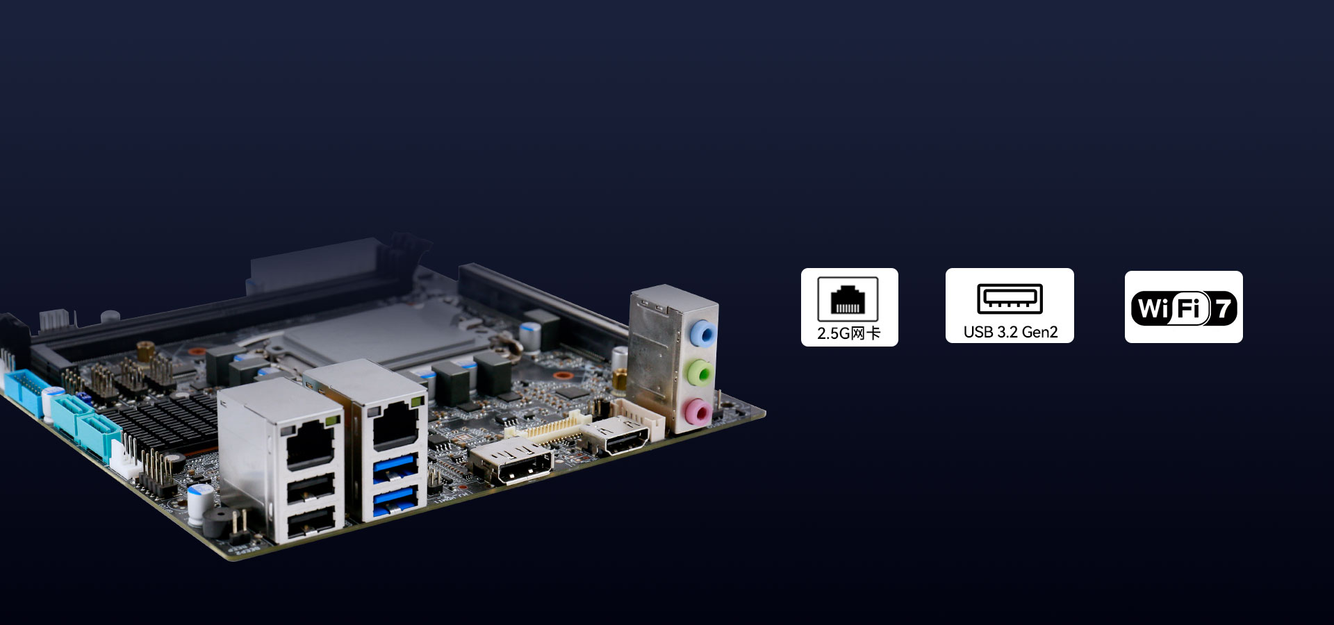 主板配备2 x USB3.2 Gen2,2 x USB2.0,内部还有2 × USB3.2 Gen1插针,2 x USB2.0插针,采用 Realtek RTL8111H1千兆网卡芯片及Intel®I225-V 2.5G网卡芯片,确保高速稳定的有线网络连接。