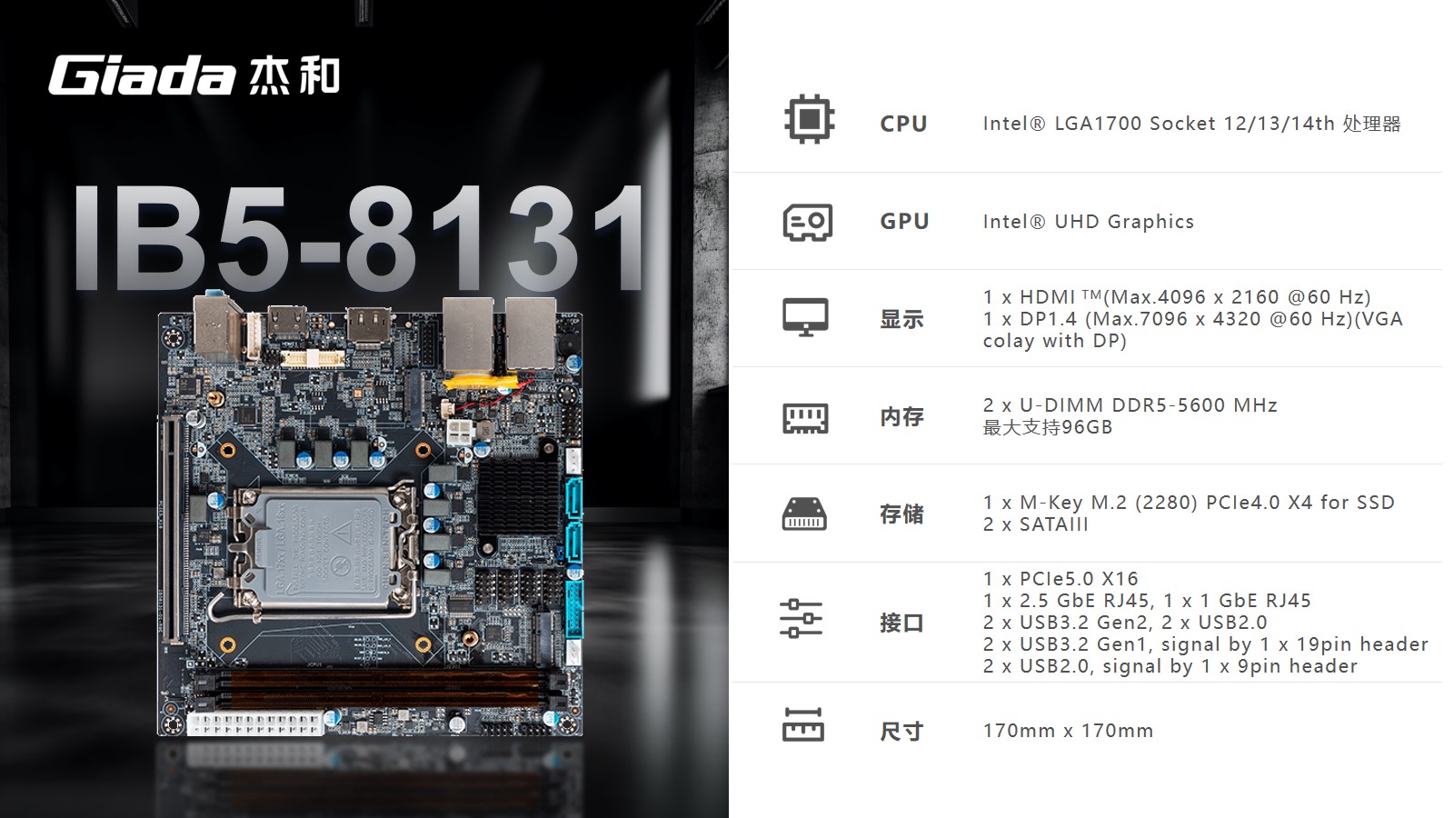 IB5-8131配备了全面的I/O端口阵列,包括USB、显示等接口;采用6+1相供电,即使在长时间高负载工作时也能维持稳定运行,支持全天候24小时连续运转,为自助服务终端提供了最强大脑。