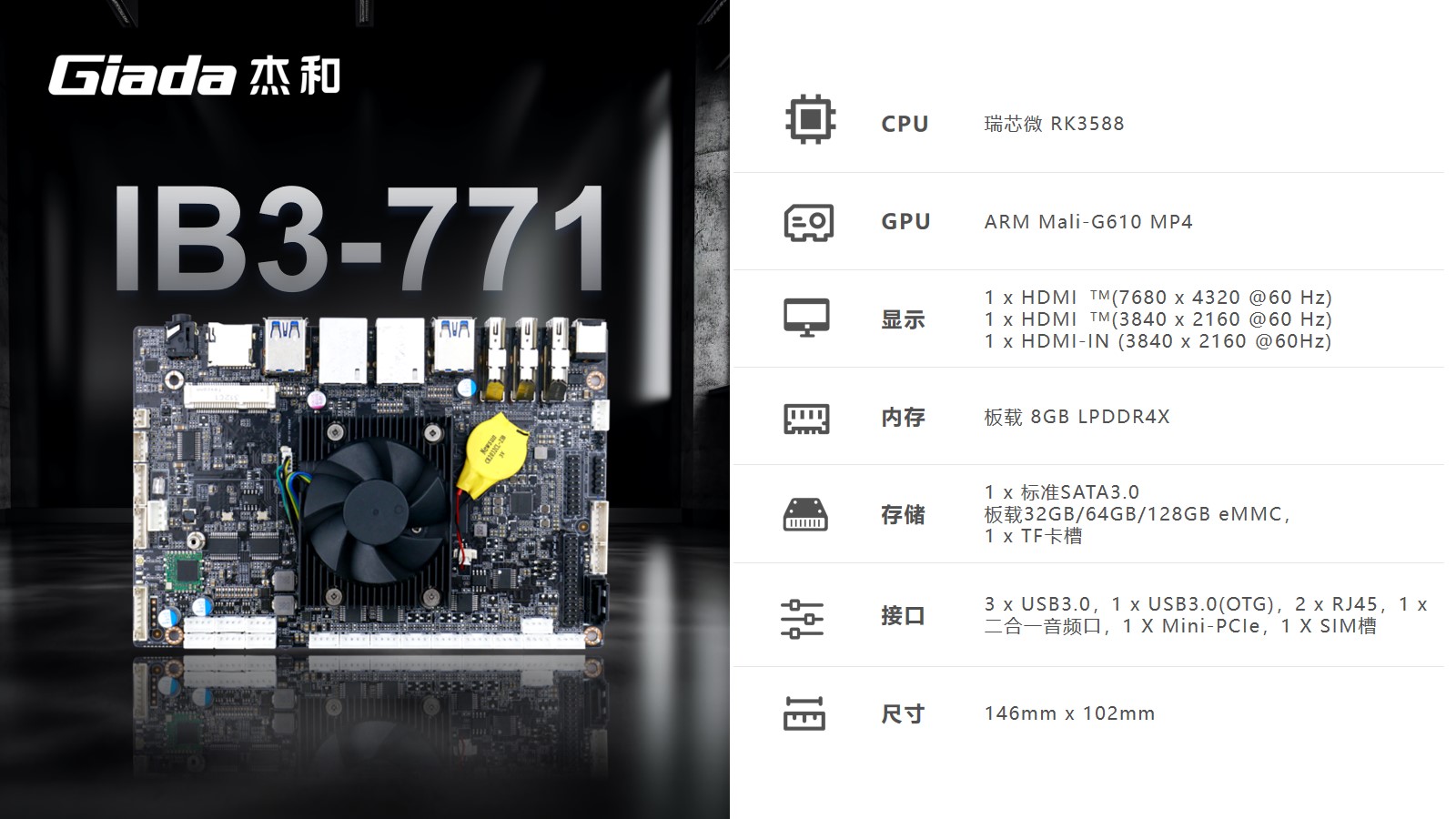 本次ONE游戏科技高交会展示的工业计算机主板IB3-771、IB3-761,搭载了Rockship的芯片,可应用于工业自动化、物联网解决方案和汽车系统,已经被多数客户部署在工厂车间以及物联网生态系统的智能设备中。