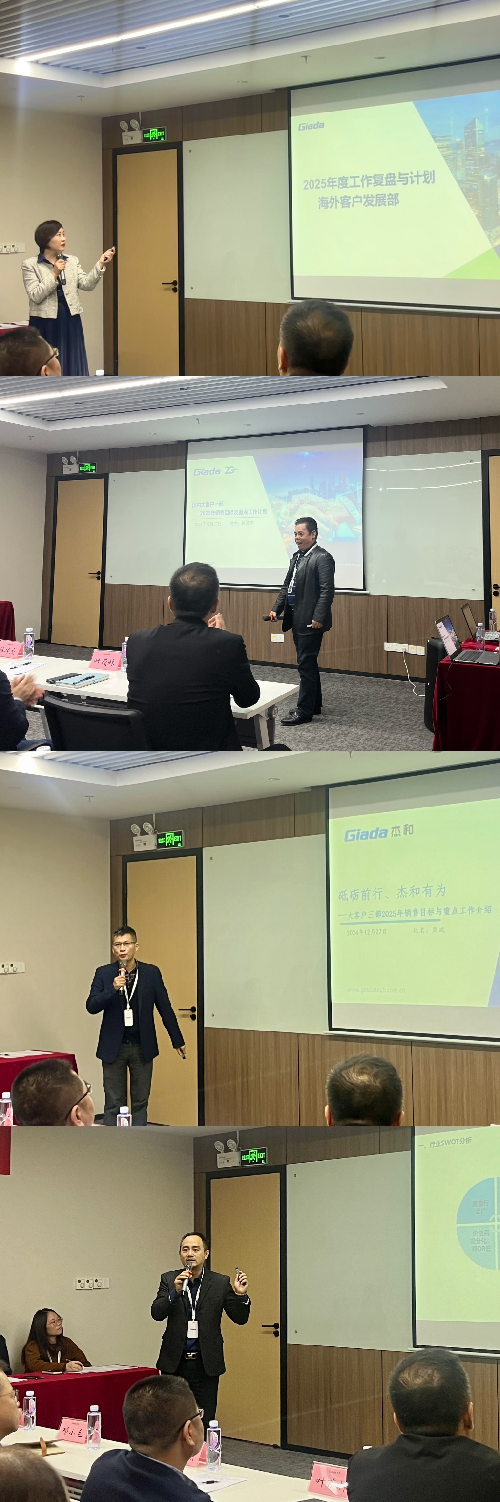 国际销售副总Linda深入分析了2025年的市场趋势和挑战,接着就2025年的业务策略和管理核心做详细介绍。她表示,未来在继续深耕现有市场的基础上,将积极开拓新兴市场,抢占更大的市场份额,同时打造一套更强大的练兵体系,进一步建立干部内部提拔机制,全面提升销售人员的专业技能和综合素质,推动业务部门走出去!
