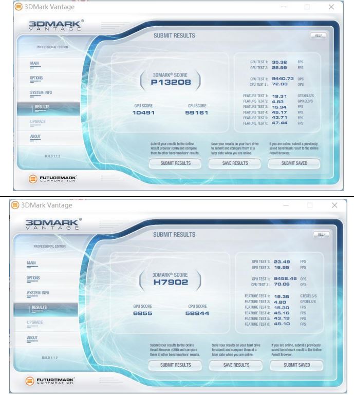 3D Mark Vantage是一款3D图形性能评测软件,主要用于评测电脑的显卡和处理器的性能。在本次测试中,我们按照画质等级,记录了性能级(Performance,P)和高端级(High,H)两份数据。