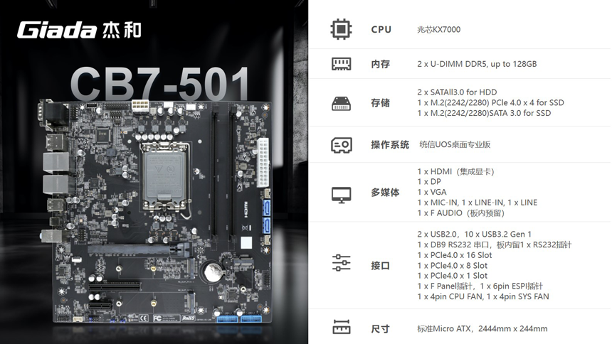 CB7-501主板则采用兆芯开先KX-7000处理器,基于C86架构,主频达3.7GHz,支持双通道DDR5内存,在金融网点场景中,可稳定对接叫号系统、打印机与身份核验设备。