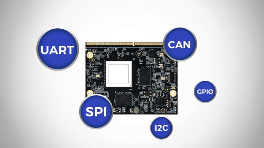 IM1-707仅82mm x 80mm的紧凑尺寸,可灵活嵌入各类机器人底盘、机身,不占用过多安装空间,采用工业级元器件与板贴一体化存储设计,从物理层面杜绝连接器在振动下的松脱风险,并通过强化结构设计实现抗冲击与宽温(-40℃~+85℃)稳定运行。SMARC接口定义了丰富的扩展能力,可通过载板轻松扩展出具身机器人所需的多种现场总线接口,高速PCIe通道:用于连接AI加速卡、高速视觉传感器、5G通信模组。这是实现高性能感知的“数据高速公路”。多路高速USB:连接多个深度相机、、触觉传感器阵列。千兆/万兆以太网:用于机器人内部网络、EtherCAT总线主站(控制伺服驱动器)、或高速外部通信。I2C, SPI, UART, GPIO:连接各类低带宽传感器、状态指示灯和安全开关。