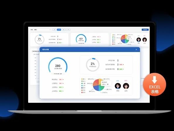 • 不同时间维度统计:通过系统后台汇总日、周、月不同周期的客流总量,分析男女性别、不同年龄段客群占比情况,VIP客户到店率情况。