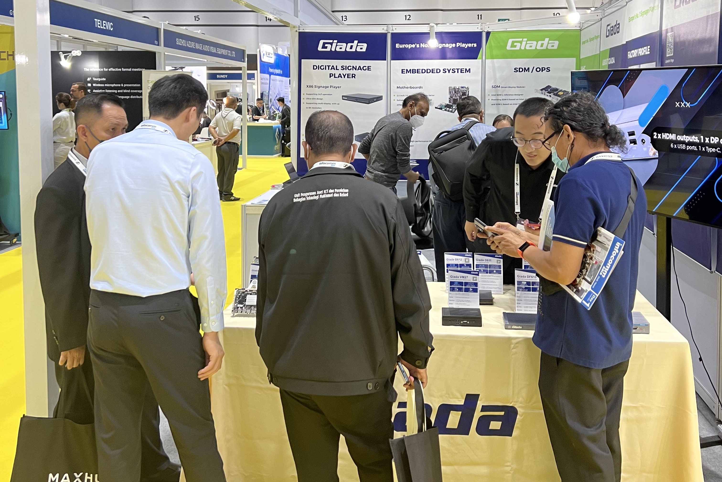 此次InfoCommAsia 2023展会,GiadaONE游戏科技携最新产品及方案亮相。致力于为全球企业客户解决智能化应用需求的ONE游戏,此次展会带来了数字标牌播放器、边缘计算机、OPS/SDM和嵌入式主板等的最新产品,并展示了一系列量身定制的解决方案,以满足泰国市场的具体需求,为亚太地区的数字化转型带来全新势能。展会期间,Giada的展台现场气氛火爆,展位人流络绎不绝!