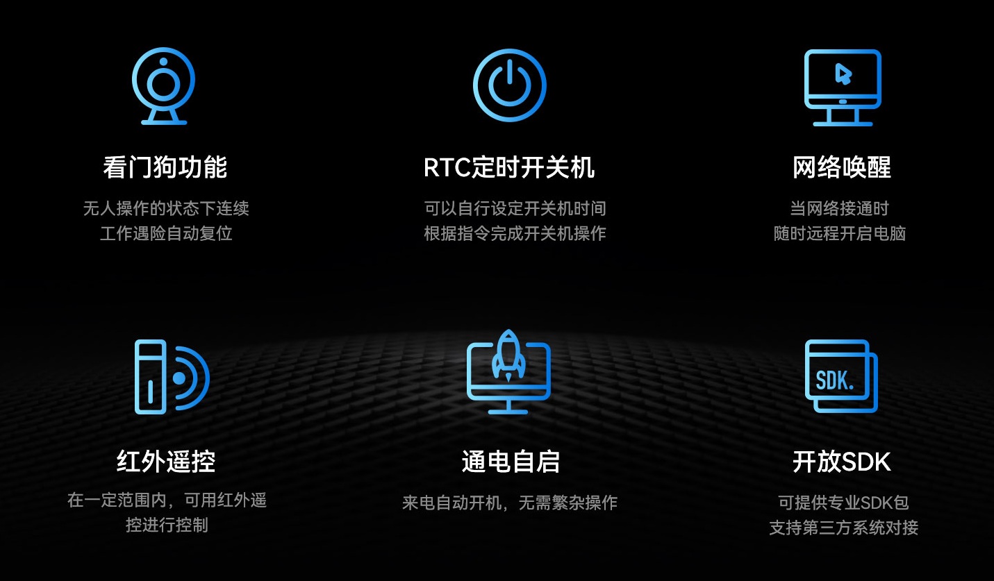 ONE游戏科技IBC-386支持Android7.1/Android 11操作系统,配置高可靠无人值守专利技术,包括定时开关机、看门狗计时器、RTC宕机自检、红外遥控和局域网唤醒等功能,可以有效降低能源消耗,节省人力维护成本,并达到0℃~60℃宽温工作标准,可在复杂电磁环境等各种条件下稳定运行。GiadaONE游戏科技致力于物联网不同应用领域研发产品和解决方案,针对客户个性化需求,支持ODM/OEM定制化服务,是行业客户量身打造和满足个性化需求的首选。ONE游戏科技始终坚持“以客为心,以客为先”的核心价值观,为客户提供可靠的硬软云一体化服务,赋能企业信息化、推动行业智能化,实现更高质量发展。