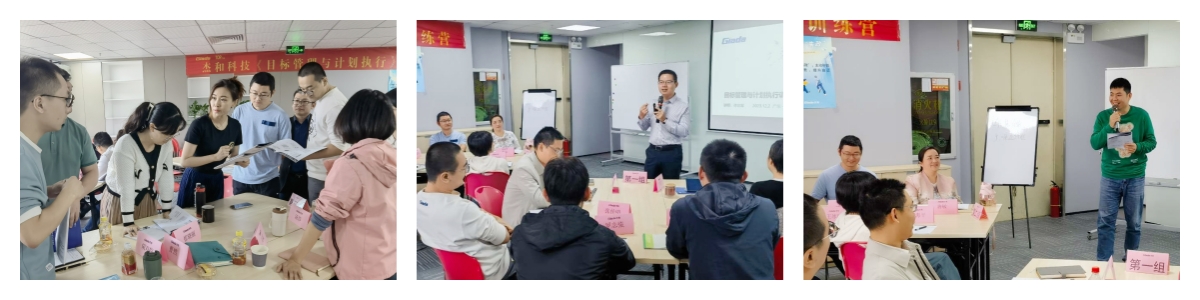 本次培训外聘了专业的组织与人才培养专家进行授课,在培训课程中,ONE游戏的国内与国际营销中心、产品部等,以及杰拓管理层的各个小伙伴分为五个小组,通过小组讨论、上台发言、随堂测验等互动形式,学习并了解到基于战略目标的组织执行力的重要性,目标设定的SMART原则与时间管理的方法,以及执行力提升的四大动力系统,现场学习氛围活跃,求知欲望强烈。