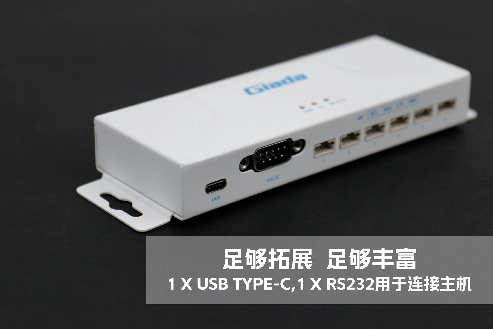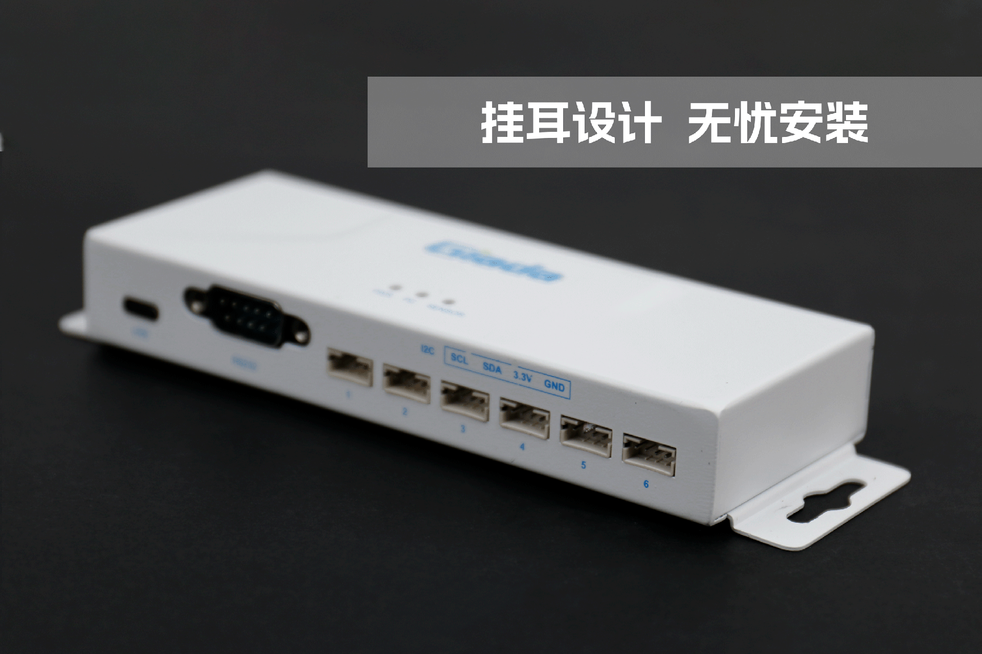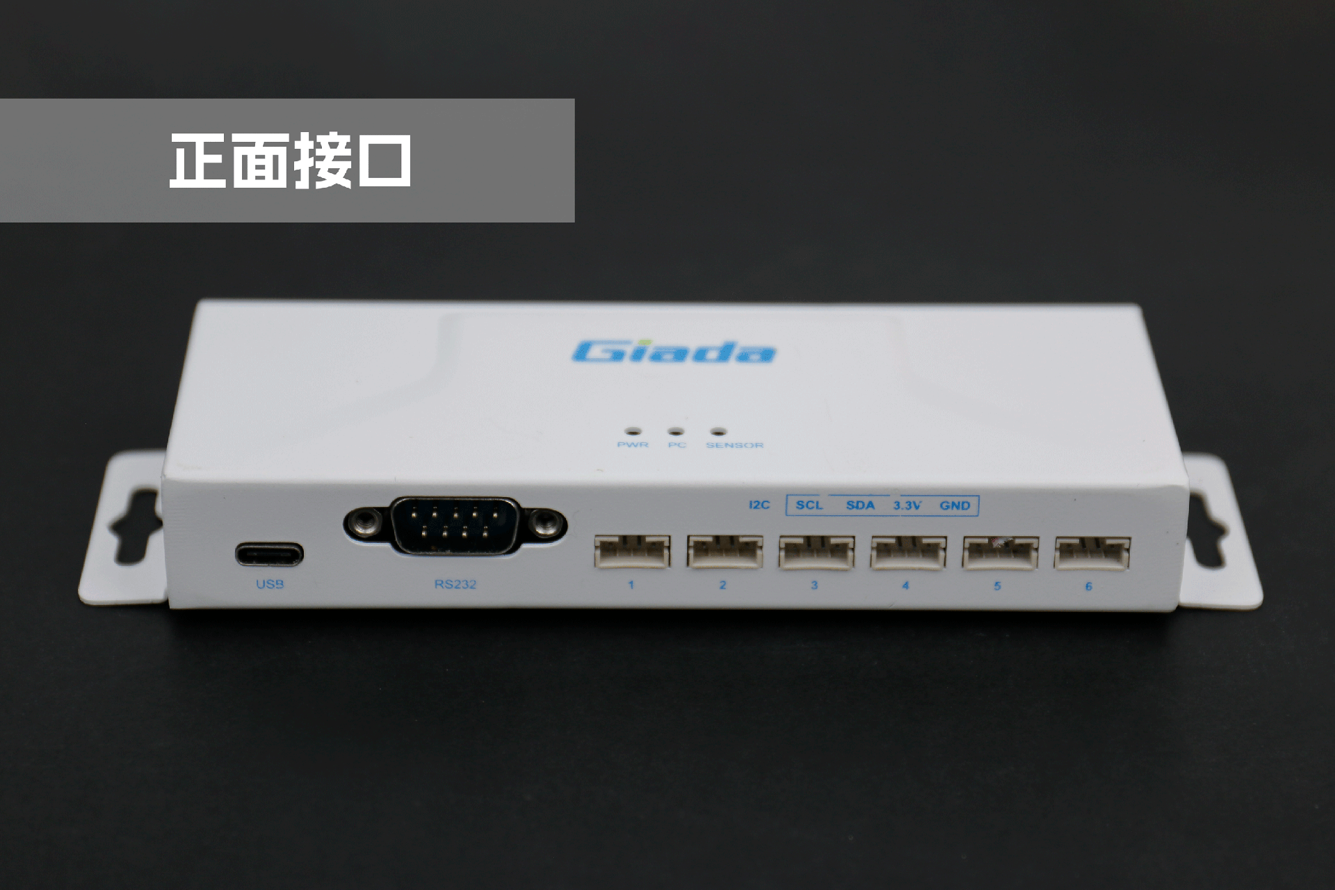 ONE游戏RD01接口丰富,正面配备1个USB Type-C,用来与媒体播放器通信(USB串口)和供电;1个RS232 串口,采用 DB9 端子,支持 DTS 和 CTS 信号,可用来与媒体播放器通信;6个I2C接口,采用6组HY2.0-4PIN端子,用于与传感器通信。在顶部设置3个LED 灯,用于状态指示,LED1通电显示蓝色,LED2与媒体播放器通讯闪烁绿色,LED3与传感器通讯闪烁绿色。