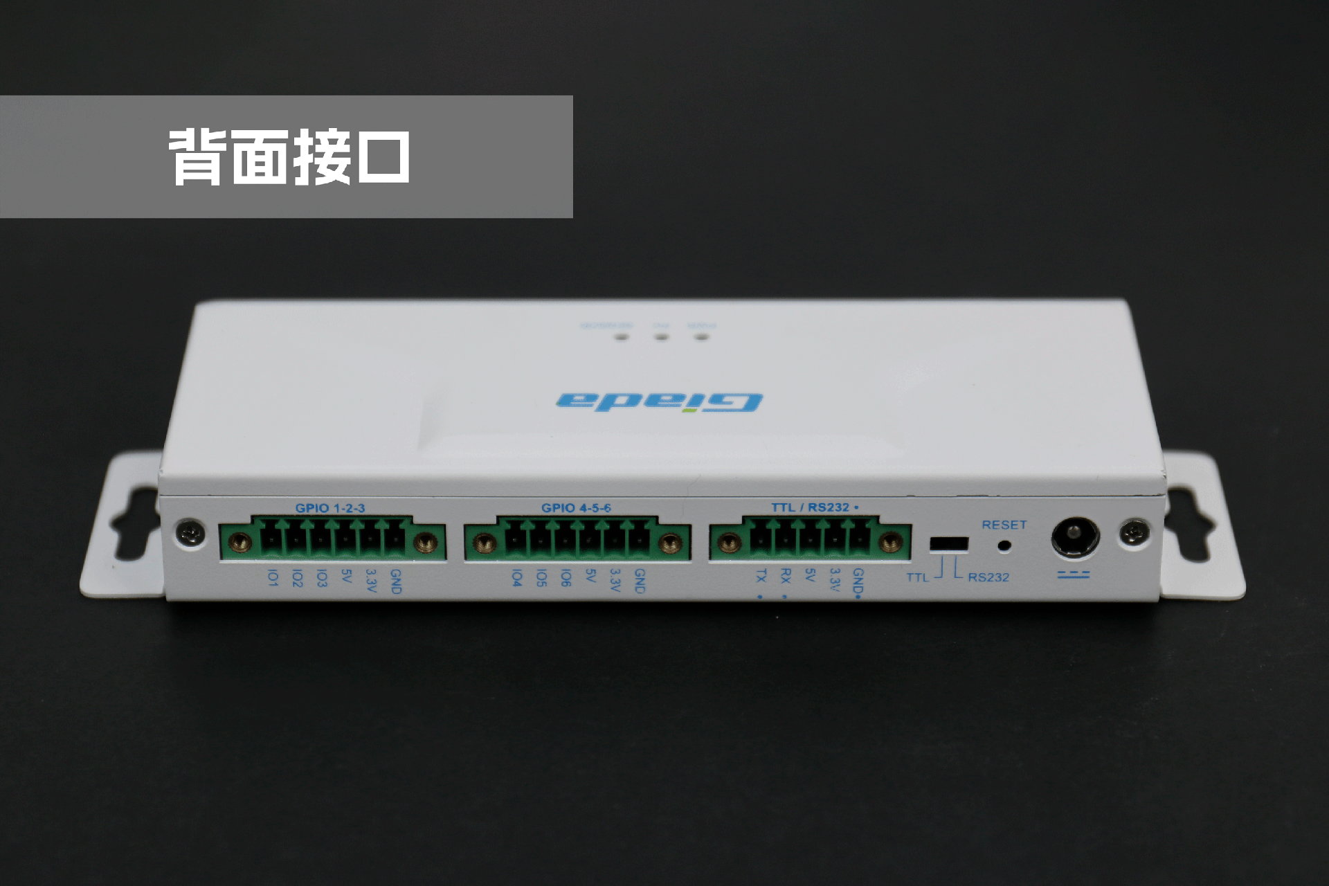 ONE游戏RD01背面配备6个GPI0接口,采用12Pin凤端子,用于与传感器通信;1个RS232 或 TTL(拨码开关选择),采用5Pin 凤凰端子(TTL 模式下支持 5V 和 3.3V 供电),用于与传感器通讯,1个拨码开关,用于选择 RS232/TTL;1个恢复出厂按钮,用于恢复出厂设置;1个DC-IN 5V 供电接口。