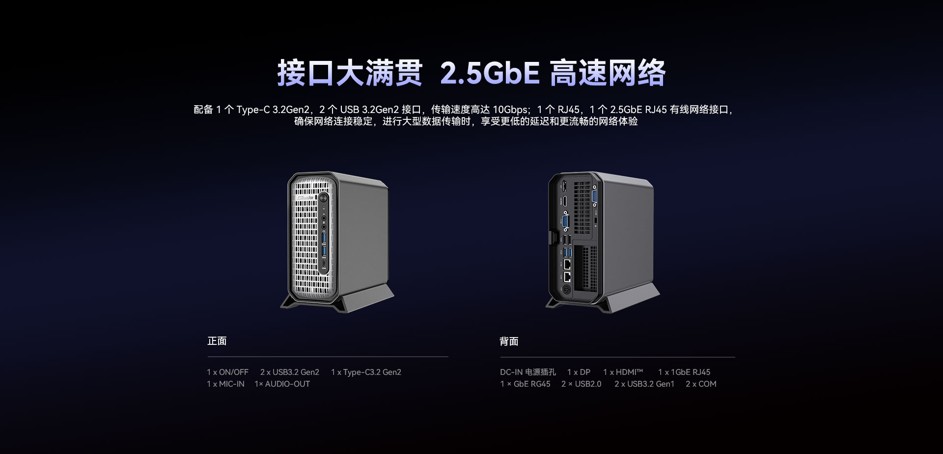 1 x 2.5GbE RJ45+1 x 1GbE RJ45
