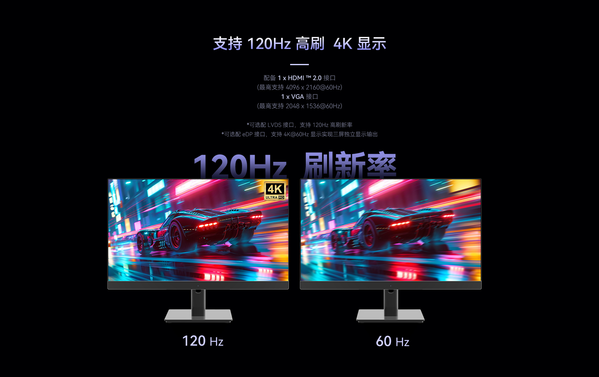 | 外部I/O | 接口 | 4xUSB3.2Gen2(10G) 1xVGA(Max.2048x1536@60Hz) 1xHDMI™2.0(Max.4096x2160@60Hz) 1xLVDS(双通道24Bit Max1920*1080@60Hz/100Hz/120Hz) 1xMIC-IN,1xAUDIO-OUT 1xRJ45(1000M) 1xRS232(COM/VGA二选一) |